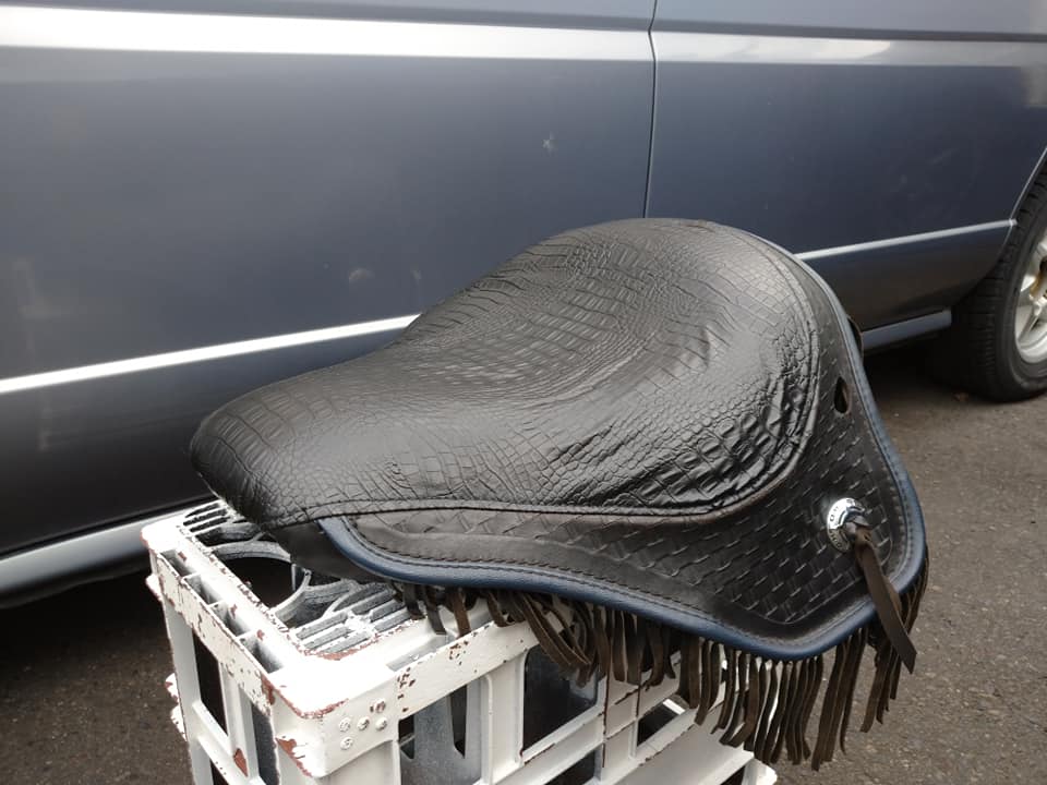 ハーレーヘリテイジスプリンガー FLSTS バイク 2022年09月09日 お客さまのご希望で革製フリルを再利用してほしいとありました。 クロコダイル生地を使用。 表皮本体の癖がつよいのでシワは残ってしまいましたが、張替完了です。 張り替えの相談、見積り無料 お気軽にお問い合わせください。 ハーレー ダイナローライダー BMW Z3 オープンカー幌