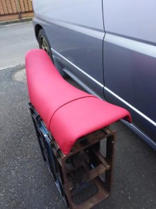 オフロードバイクシート張り替え完了 張り替え相談、見積り無料お気軽にお問い合わせください